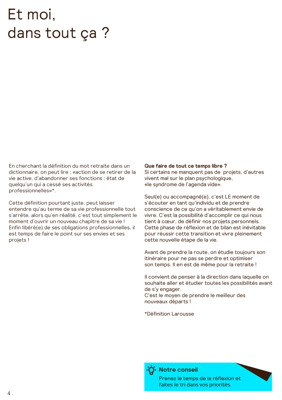 Pour autant, cette nouvelle étape de vie doit être bien préparée pour en profiter le plus sereinement possible.