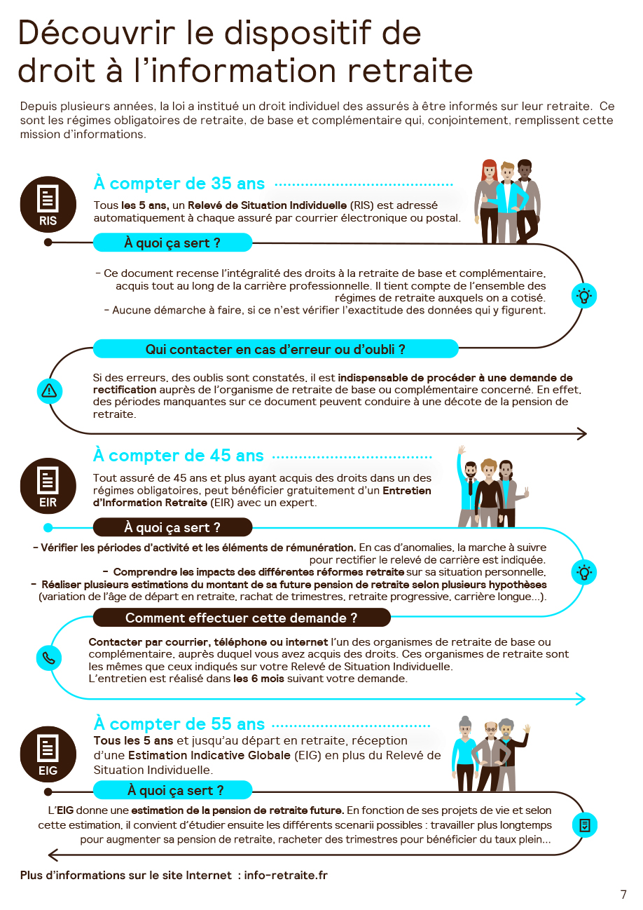 Depuis plusieurs années, la loi a institué un droit individuel des assurés à être informés sur leur retraite. Ce sont les régimes obligatoires de retraite, de base et complémentaire qui, conjointement, remplissent cette mission d’informations.