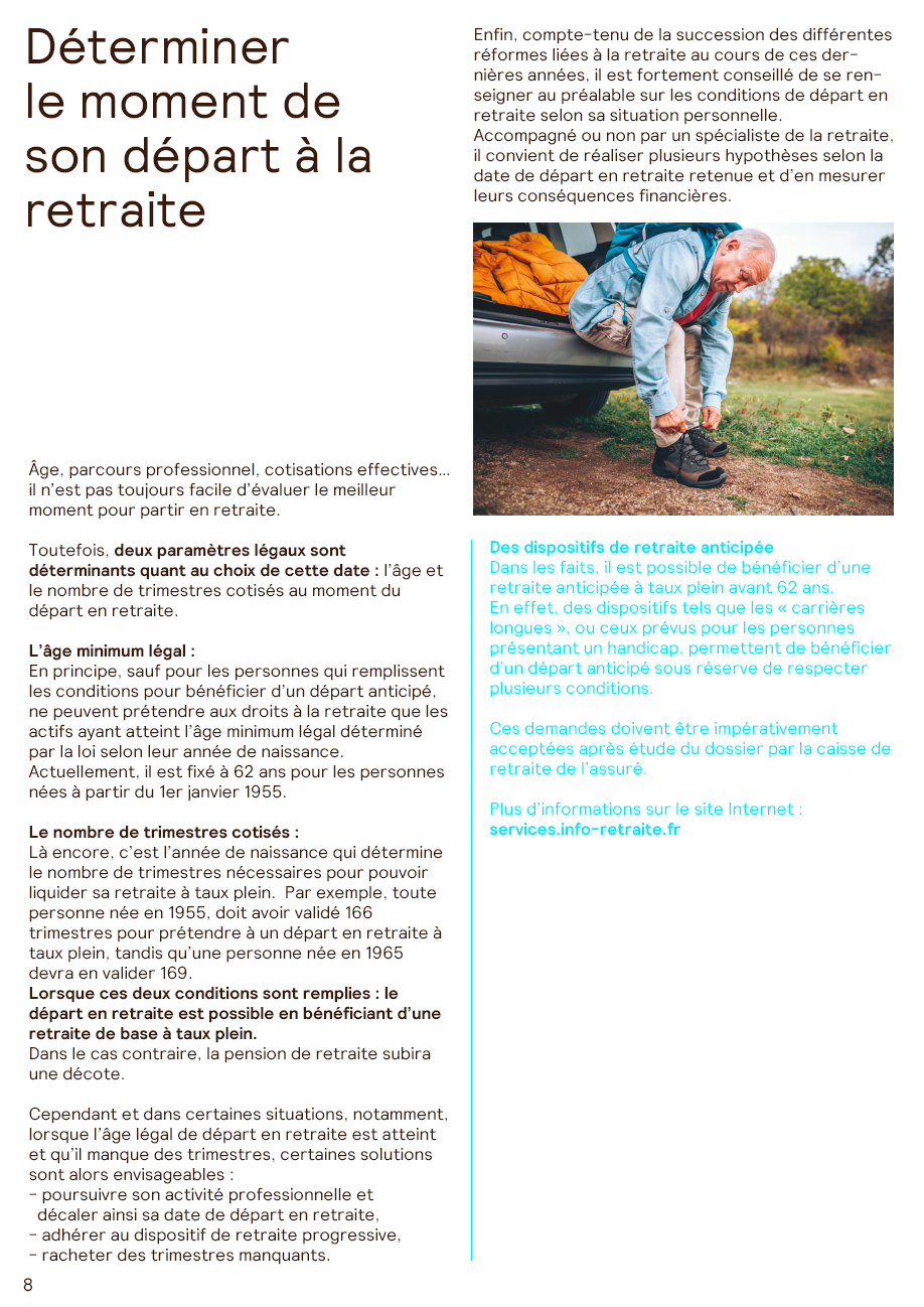 seigner au préalable sur les conditions de départ en retraite selon sa situation personnelle.